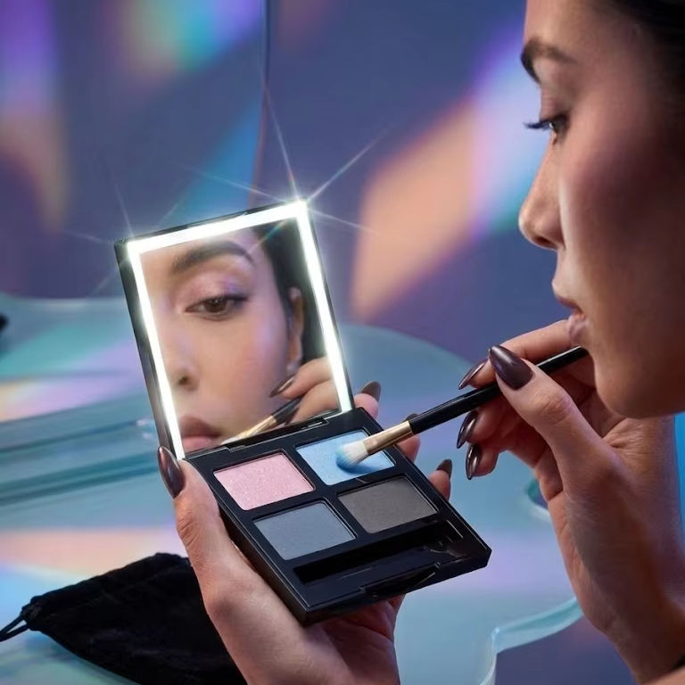 Palette compacte de fards à paupières et de poudres en vrac en plastique ABS avec lumière LED, légère, couleur personnalisée, forme carrée HY50