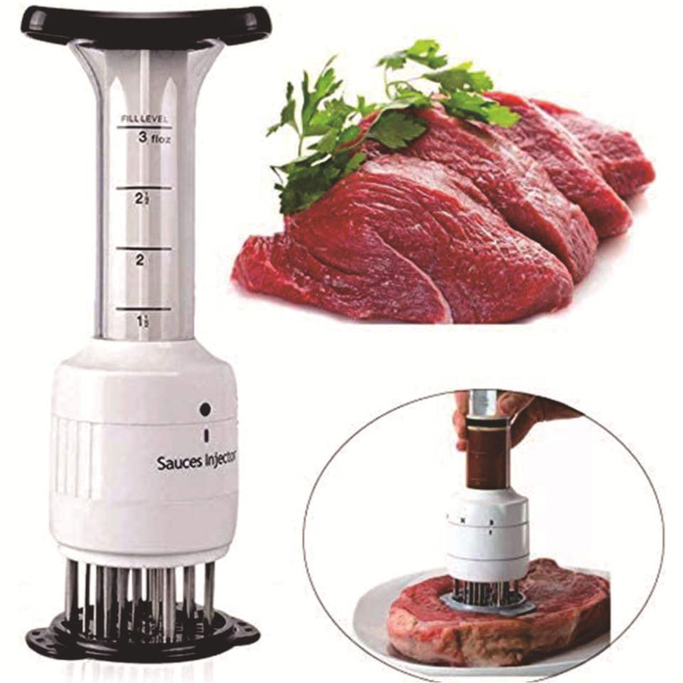 Seringue à marinade pour viande en plastique avec 3 aiguilles pour porc, steak et sauces – Outil de cuisine écologique