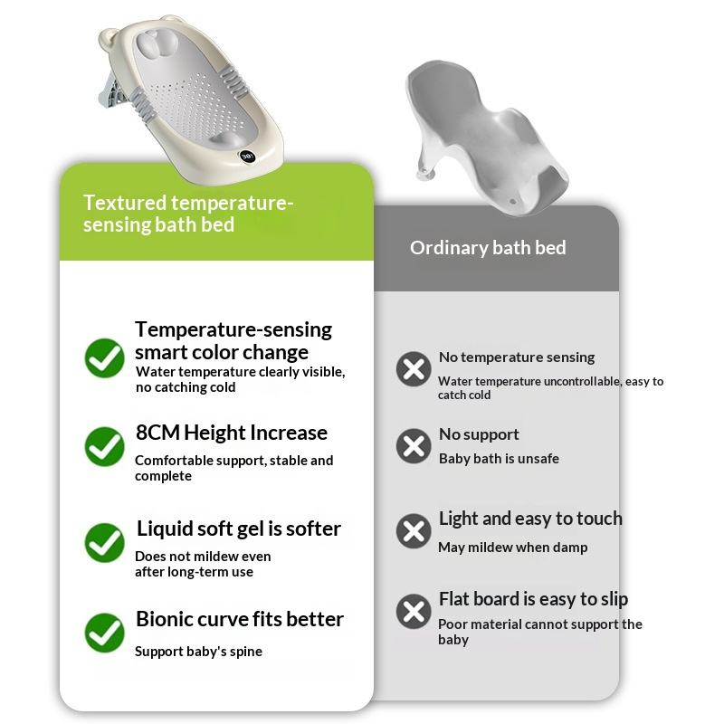 Support de bain antidérapant en plastique pour bébé, avec affichage de la température, pour nouveau-né (position assise/allongée)