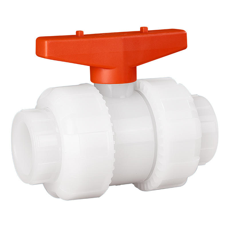 Vanne à boisseau sphérique en plastique PVDF, raccord double droit, manuelle, pour l'industrie chimique, l'eau, de qualité alimentaire, température ambiante