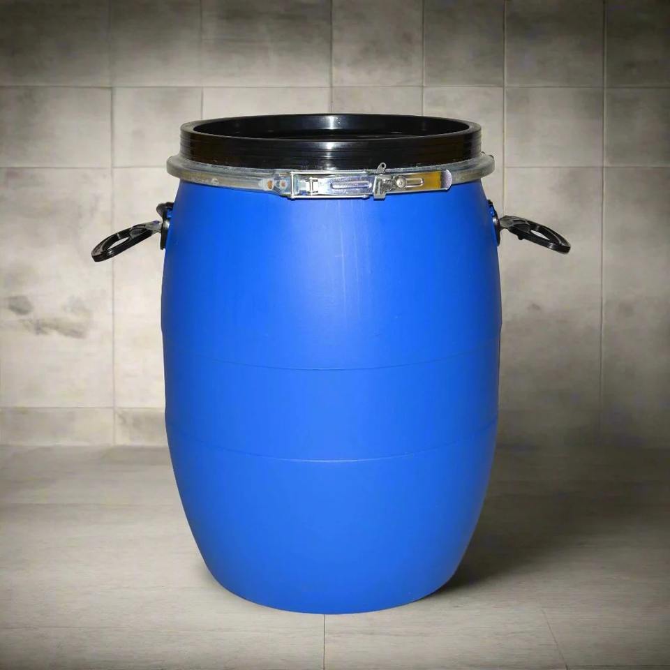 Fût en plastique de 200 litres, HDPE, à ouverture supérieure, bleu, fût en plastique de 55 gallons avec cerceau en fer