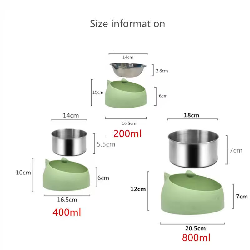 Bol pliable portable pour chat et chien en acier inoxydable avec base en plastique et design incliné à 15° pour l'alimentation et l'eau des animaux de compagnie