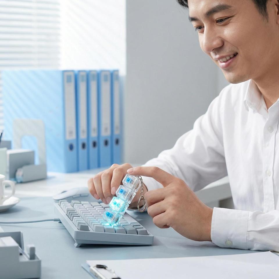 Porte-clés en plastique à bouton de décompression pour soulagement émotionnel et anti-stress, avec impression numérique rétroéclairée, portable