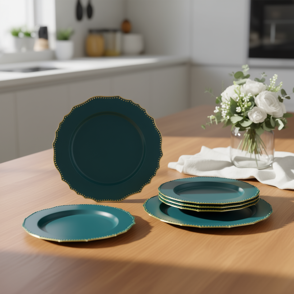 Ensemble de 8 assiettes de présentation rondes en plastique, solides, élégantes et durables pour les fêtes