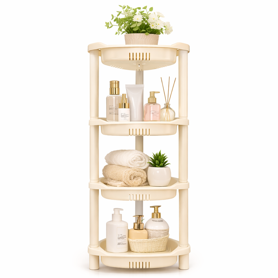 Étagère de Douche d'Angle Moderne en Plastique à 4 Niveaux, Support de Rangement Triangulaire Écologique et Durable, Organisateur de Salle de Bain Amovible et Gain de Place