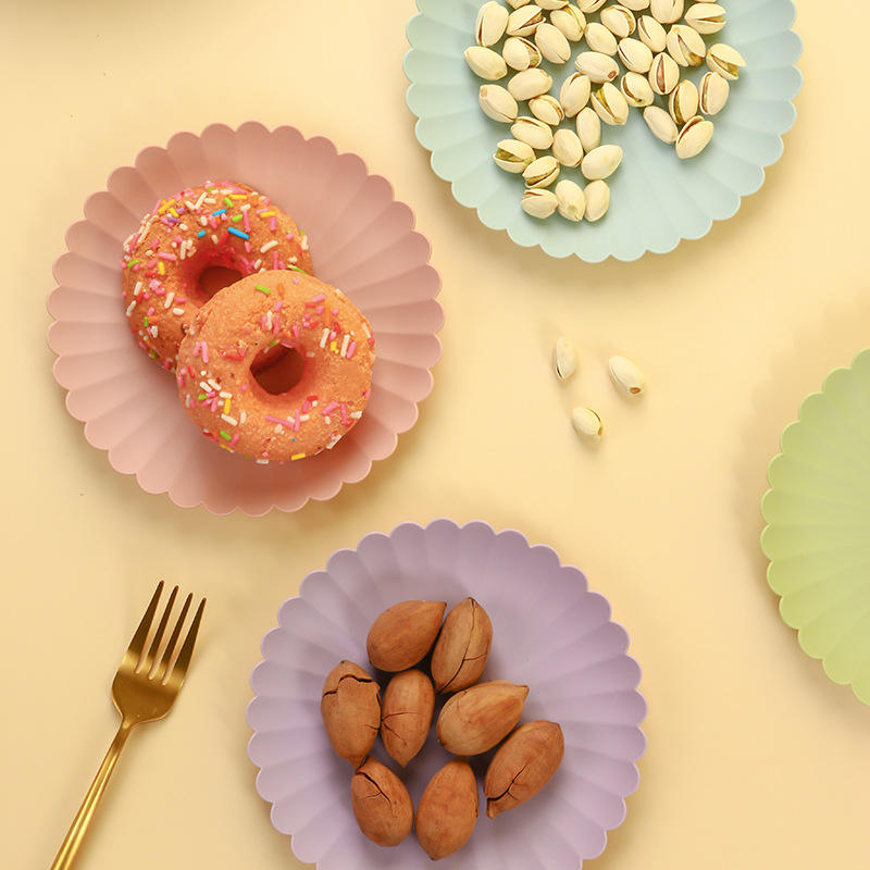 Assiette à dessert en plastique, petite, ronde, colorée, pour collations et desserts, usage domestique