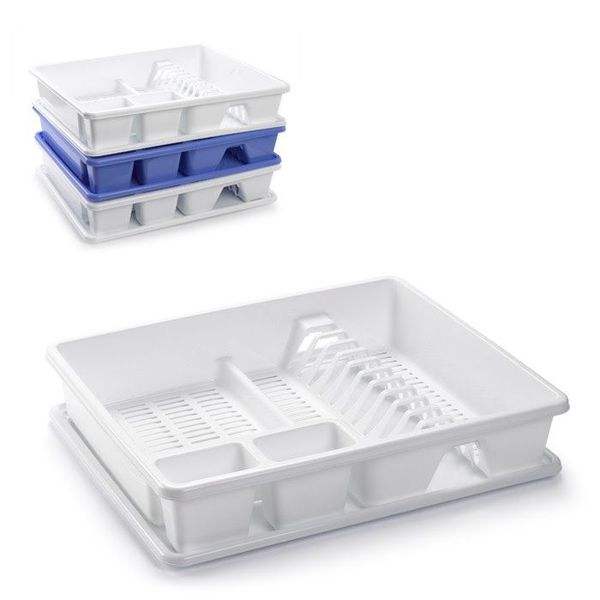 Égouttoir à vaisselle carré empilable en plastique pour évier de cuisine, blanc et bleu
