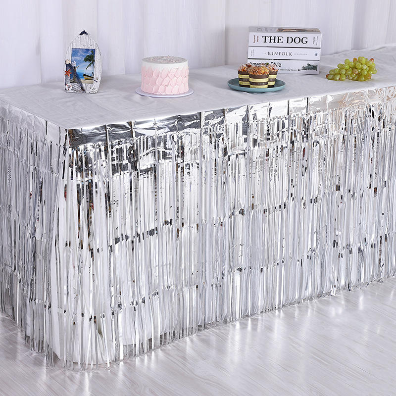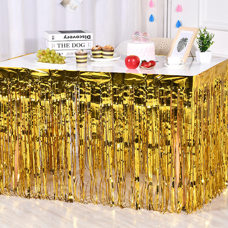 Jupes de table en plastique jetables en feuille métallique pour anniversaire, mariage, fiançailles, fête de mariage, fournitures de fête