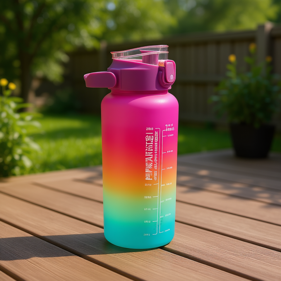 Conteneur à boisson en plastique 2,0 L avec couvercle à rabat, design moderne unisexe pour la randonnée et le camping