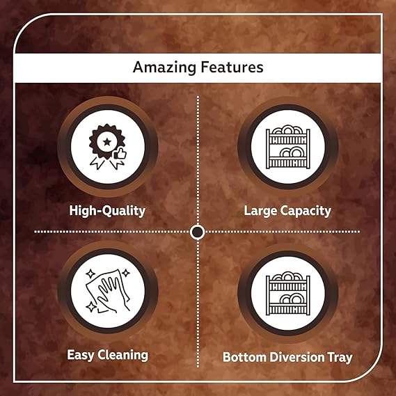 Égouttoir à vaisselle en plastique durable avec plateau de séchage (45 x 32 x 18 cm, Marron)