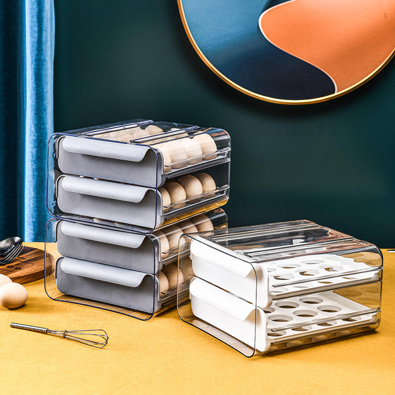 Boîte de rangement pour œufs en plastique avec couvercle rabattable, style tiroir, pour réfrigérateur, utilisation en cuisine
