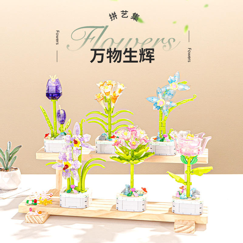 Ensemble de blocs de construction en plastique en forme de fleurs, 100-200 pièces, jouet éducatif pour adolescents de 2 à 14 ans, assemblage DIY, cadeau, ornement