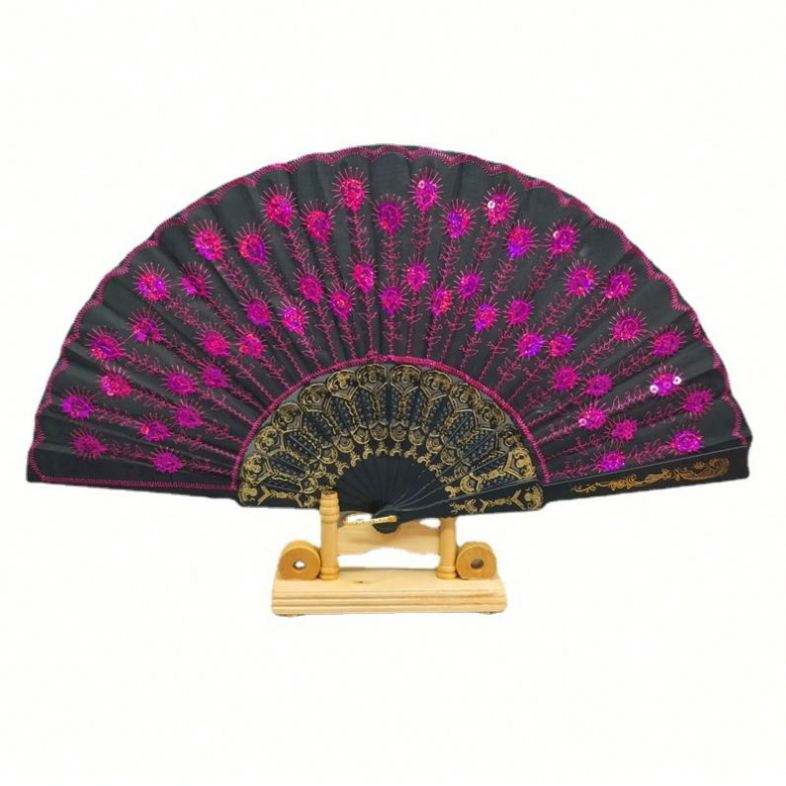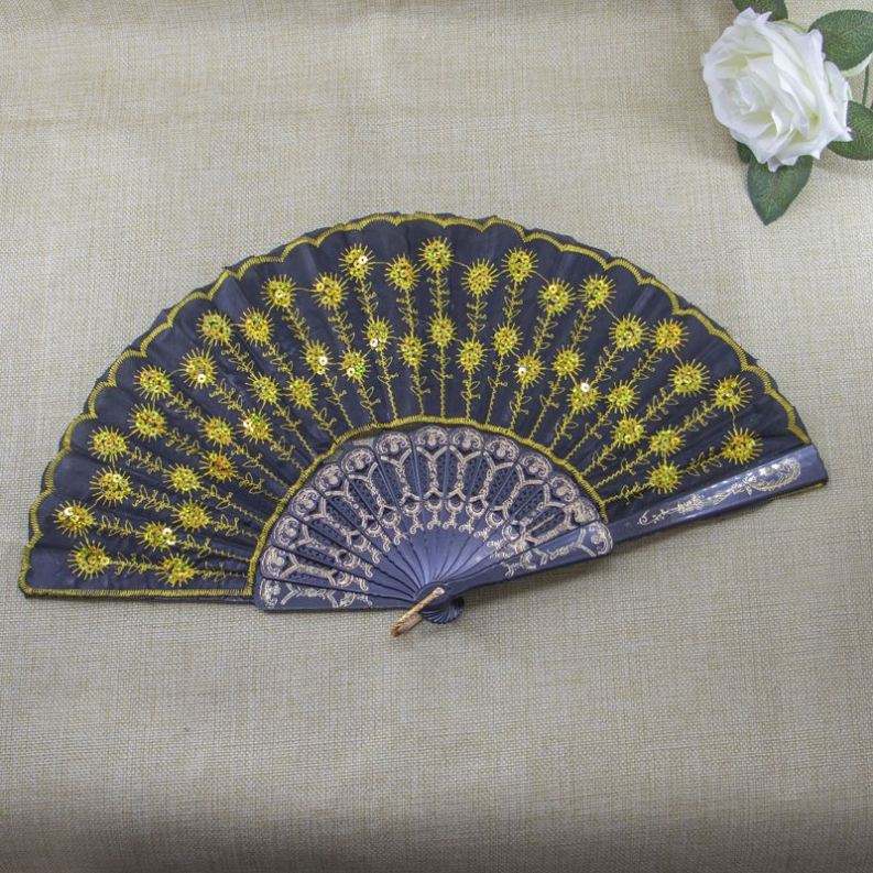 Éventail pliant en plastique, broderie espagnole, sequins, pour décoration