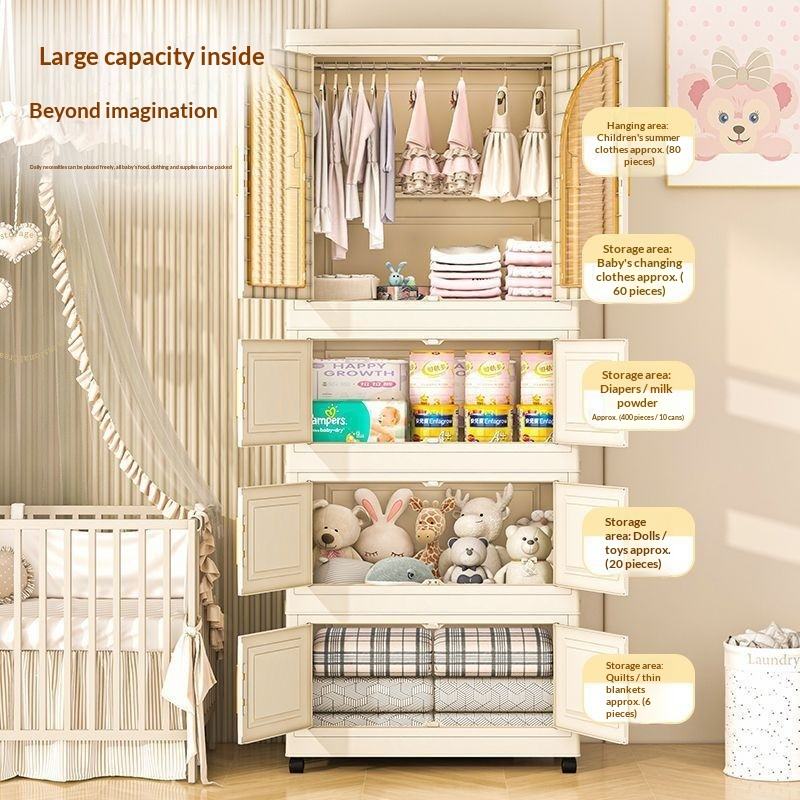 Armoire de rangement pliable en plastique, montage simple, multi-niveaux, multifonctionnelle, design américain, armoire pour bébé pour enfants