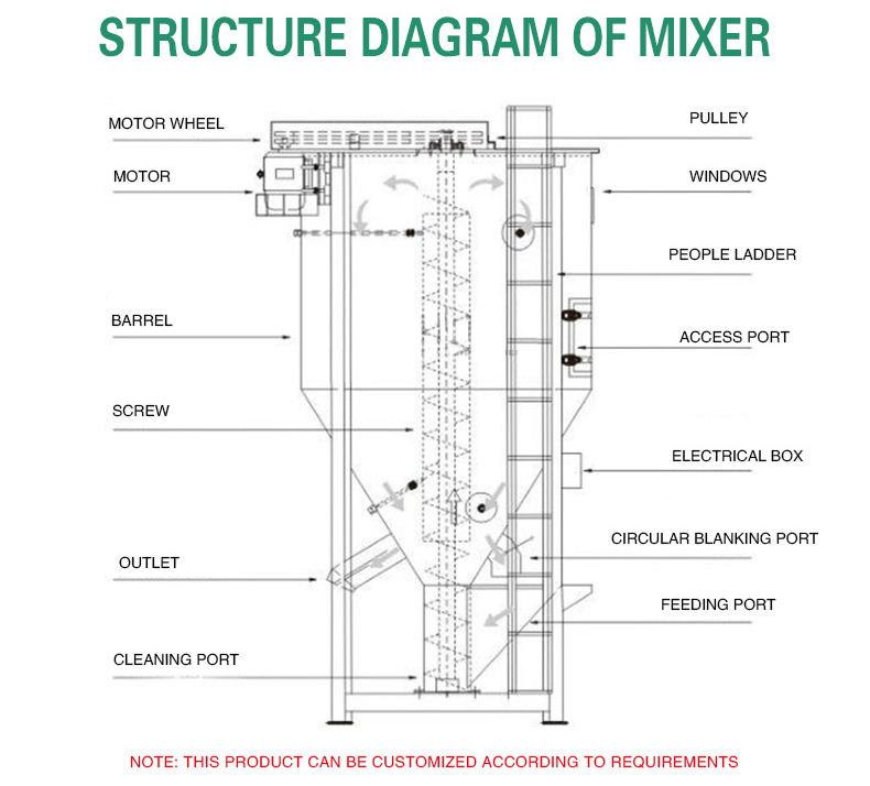 Mélangeur de grains de granulés en plastique Mélangeurs verticaux de 500 kilos Mélangeur Prix