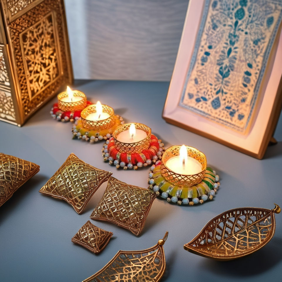 Plastic Handmade Tea Light Candle Holder with Brass Design for Home & Party Diwali Decoration
