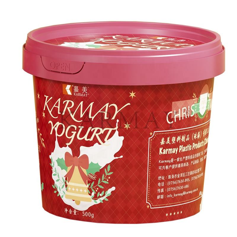 Plastic Ice Cream Tub Yoghurt Yogurt 500ml with Lids deli Container Round 500ml 16 ounce IML label Christmas Europe style