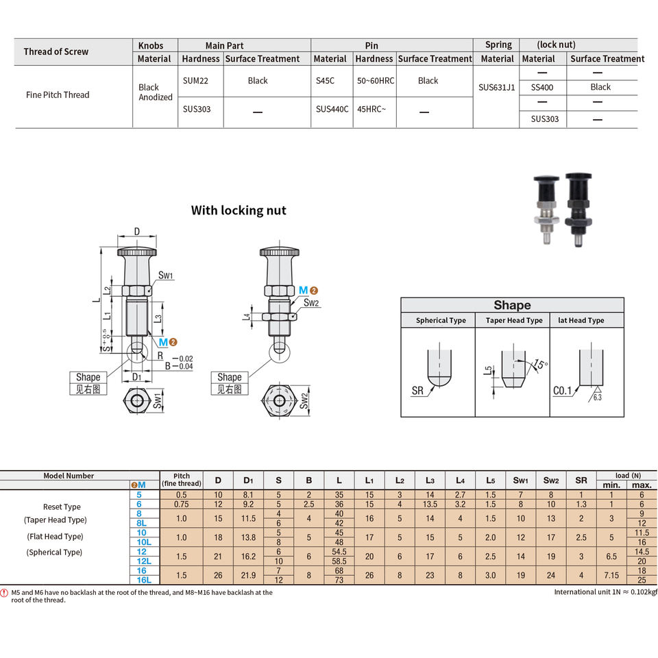 Plastic Knob and Carbon Steel Return Type Self Locking Spring Loaded Plunger Indexing Plunger