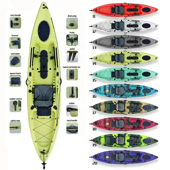 Canoë en plastique PEBDL à poser sur le dessus Kayak de pêche à pédales à rabat pour sports nautiques à vendre