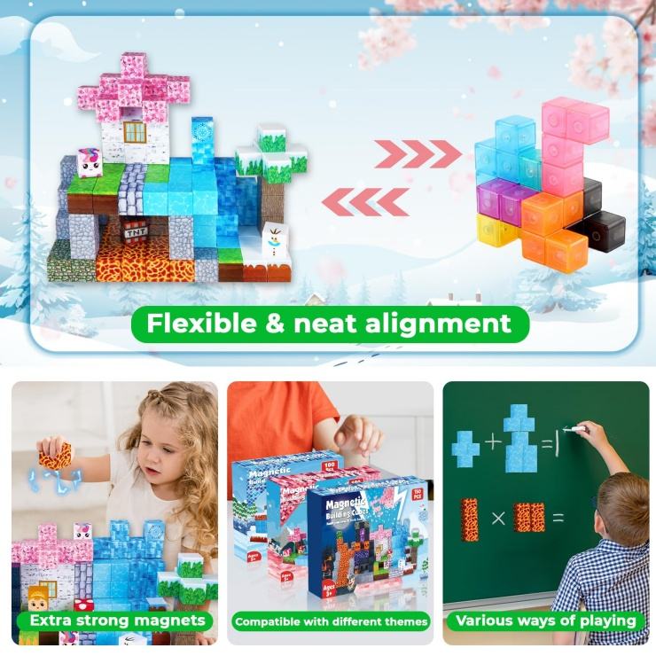 Blocs magnétiques en plastique 150 pièces Cubes magnétiques empilables Dark Forest Glacier Castle Building Block Set STEM Montessori Sensory Toys