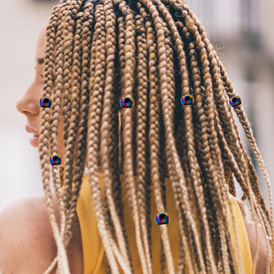 Perles en plastique obsidienne pour tresses colorées, grand trou unique, accessoire coloré en vrac, extension de cheveux électro-plaquée