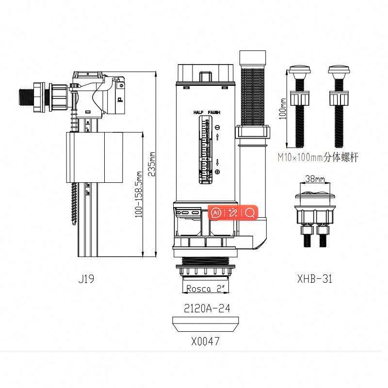 Mécanisme de chasse d'eau en plastique PP à double chasse avec entrée latérale inférieure Valve de remplissage Flotteur Monté au sol Conception d'économie d'eau
