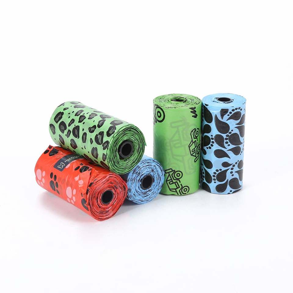 Sacs à déjections canines jetables écologiques en plastique, portables, 5 rouleaux, parfum fruité, pour le nettoyage