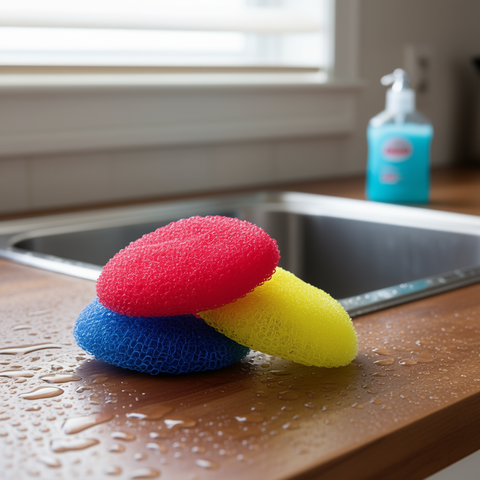 Éponges en plastique pour casseroles, 15g chacune, lot de 3 en filet, pour nettoyer la vaisselle de cuisine