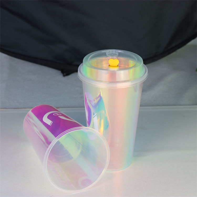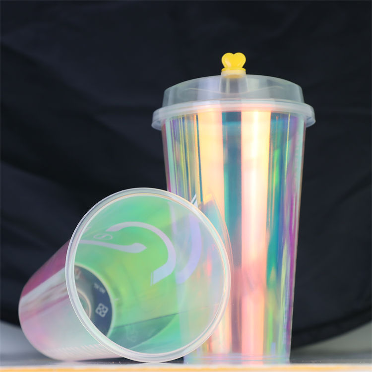Gobelet en plastique arc-en-ciel commercial 90 Caliber pour thé, lait, boissons, pouding, café Dirty Coffee, en PP