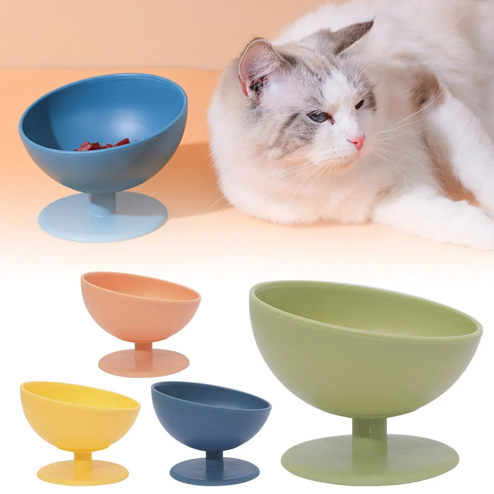 Plastic Raised Cat Bowls Elevated Food or Water Bowls Anti Vomiting Stress Free Pet Feeder Dish for Cats and Small Dogs