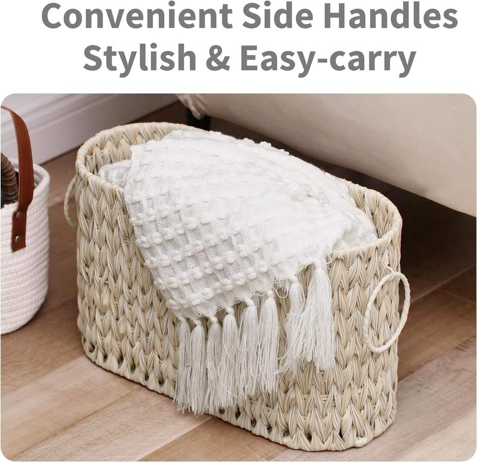 Panier de rangement en rotin synthétique tressé pour papier toilette de salle de bain, paniers de rangement pour chambre à coucher avec poignées