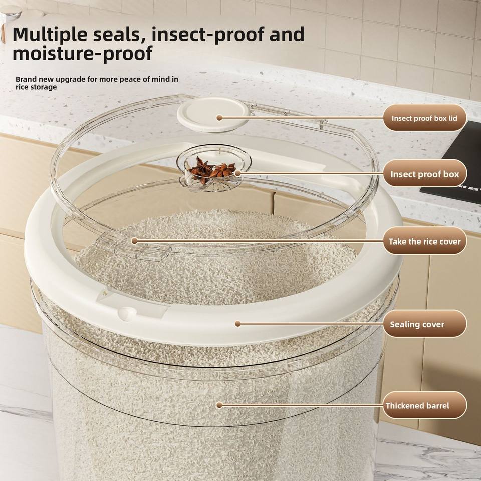 Seau à riz en plastique, boîte de rangement hermétique anti-insectes et anti-humidité de qualité alimentaire pour riz, farine, haricots et jouets