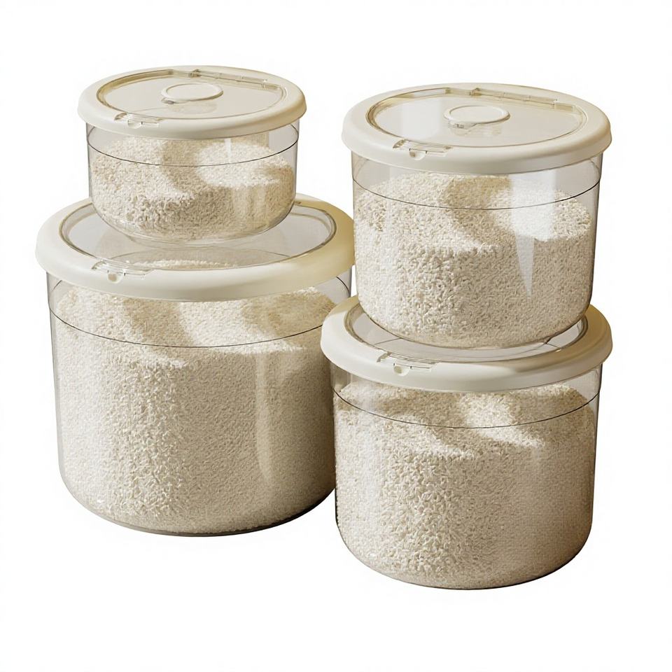 Stockage du riz, farine de riz, haricots, rangement des jouets