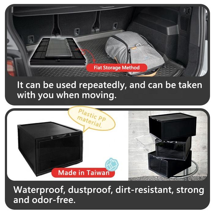 Boîte de rangement pour chaussures en plastique, présentoir pour la maison et la chambre, noir