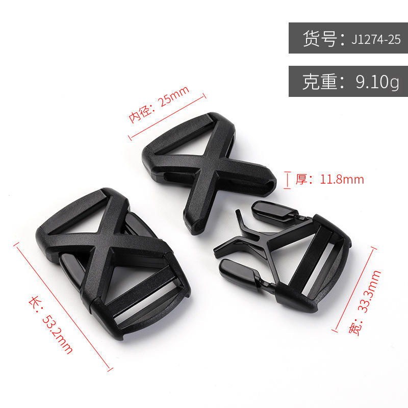 Boucle latérale en plastique à dégagement rapide, diamètre intérieur de 25 mm, durable pour sacs, couleur unie noire J1274-25