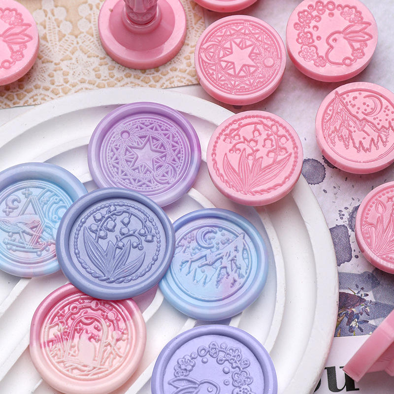 Têtes de tampons en plastique pour sceau de cire, tampons de journal créatifs, ensemble de tampons ronds