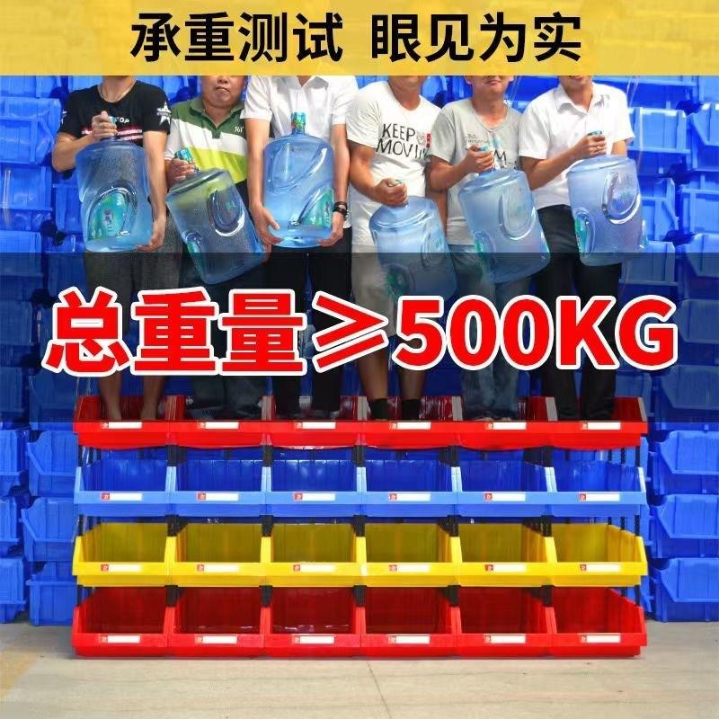 Bac de rangement en plastique rectangulaire empilable avec ouverture inclinée pour l'organisation du garage et le stockage de composants