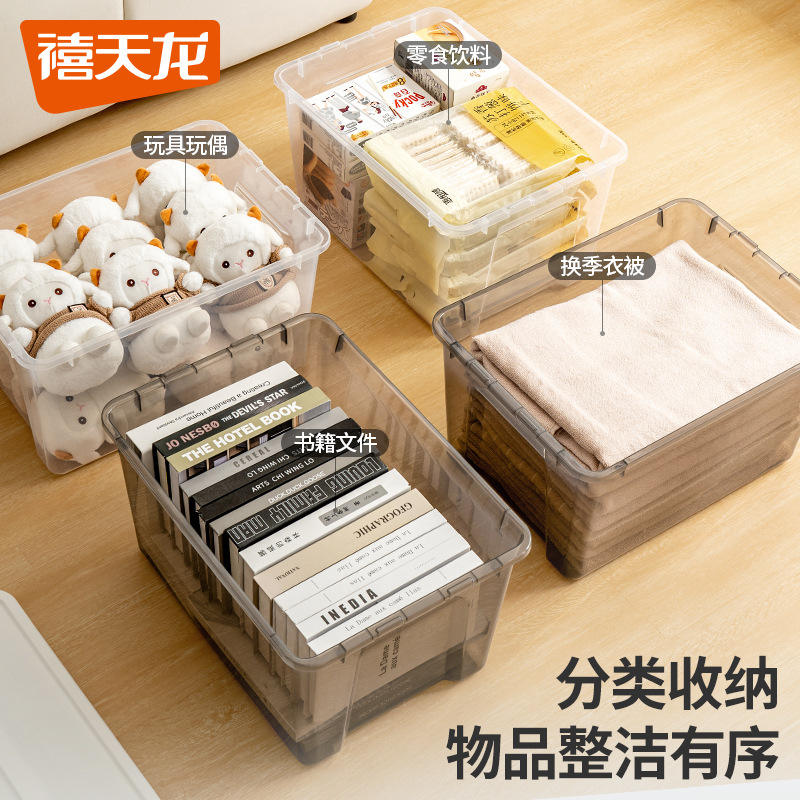 Boîte de rangement en plastique rectangulaire transparente avec couvercle pour l'organisation des vêtements et des jouets 6333