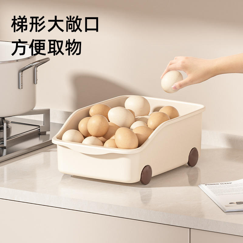 Boîte de rangement en plastique avec roulettes et poignées pour l'organisation des aliments, des boissons et des jouets dans les armoires de cuisine, bac rectangulaire de couleur unie