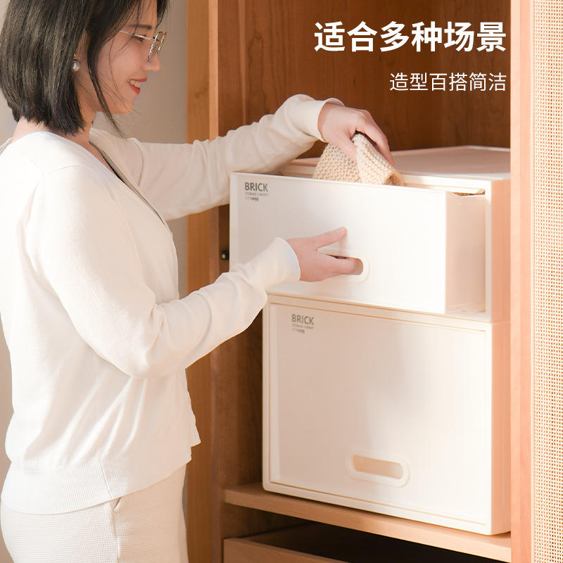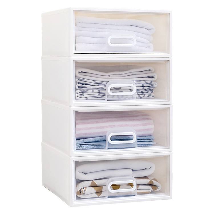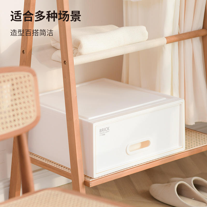 Tiroir de rangement en plastique rectangulaire blanc laiteux pour vêtements, type autoportant, 1 niveau