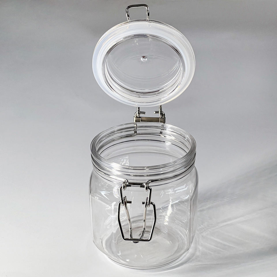 Pot de stockage en plastique Pot de miel Pot de maçon en plastique alimentaire avec serrure Clip articulé Scellage Pots à épices en bambou Bouteilles en plastique