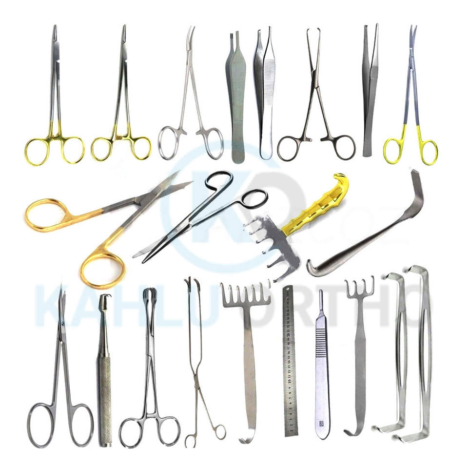 Kit de base de chirurgie plastique de 22 ensembles d'instruments chirurgicaux de chirurgie générale par KAHLU ORTHOPEDIC