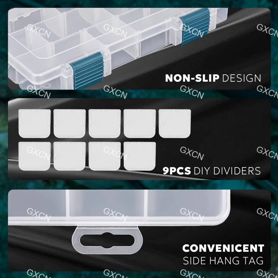 Plateaux d'attirail en plastique Organisateur de rangement de boîte de matériel de pêche avec séparateurs amovibles Boîtes de leurre Stockage de matériel terminal