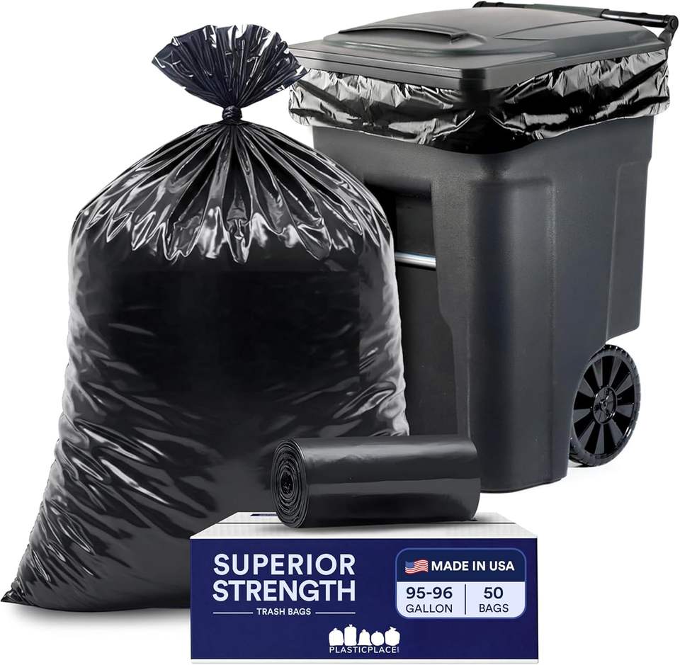 Sacs poubelle résistants en plastique Plasticplace, 95-96 gallons, sacs à ordures, résistants aux perforations, grands sacs en plastique (50 unités)
