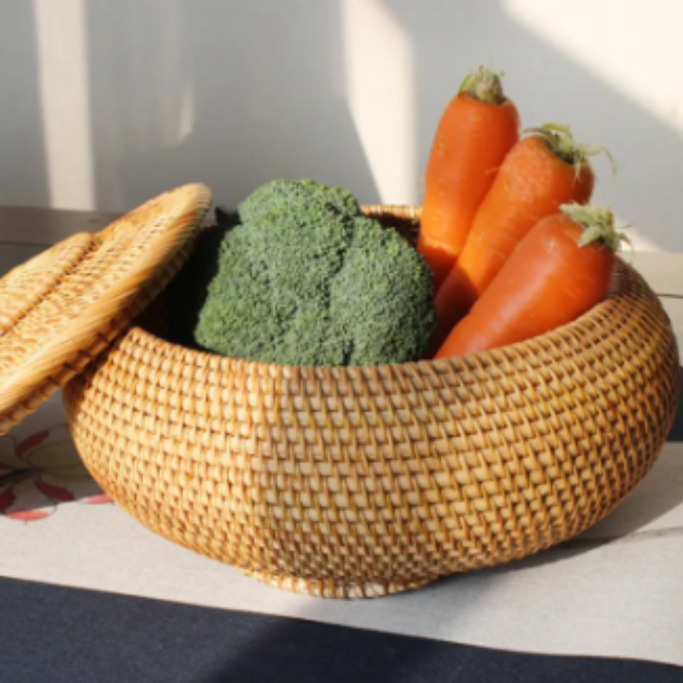 Classique Viet Nam tissé panier de rangement plaque motif rotin osier artisanat poignée pliable pour la décoration de la maison fleur cadeau panier