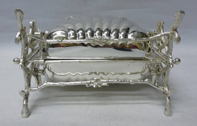 Boîte à biscuits pliante en coquille plaquée Chauffe-biscuits en métal antique pour mariage, restaurant, hôtel, présentoir de nourriture, style victorien, argent