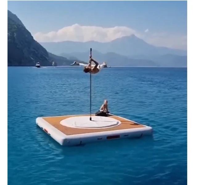 Plateformes flottantes gonflables, tapis d'eau gonflables pour la danse, quai flottant gonflable pour la pole dance, plateforme aquatique gonflable avec barre de danse