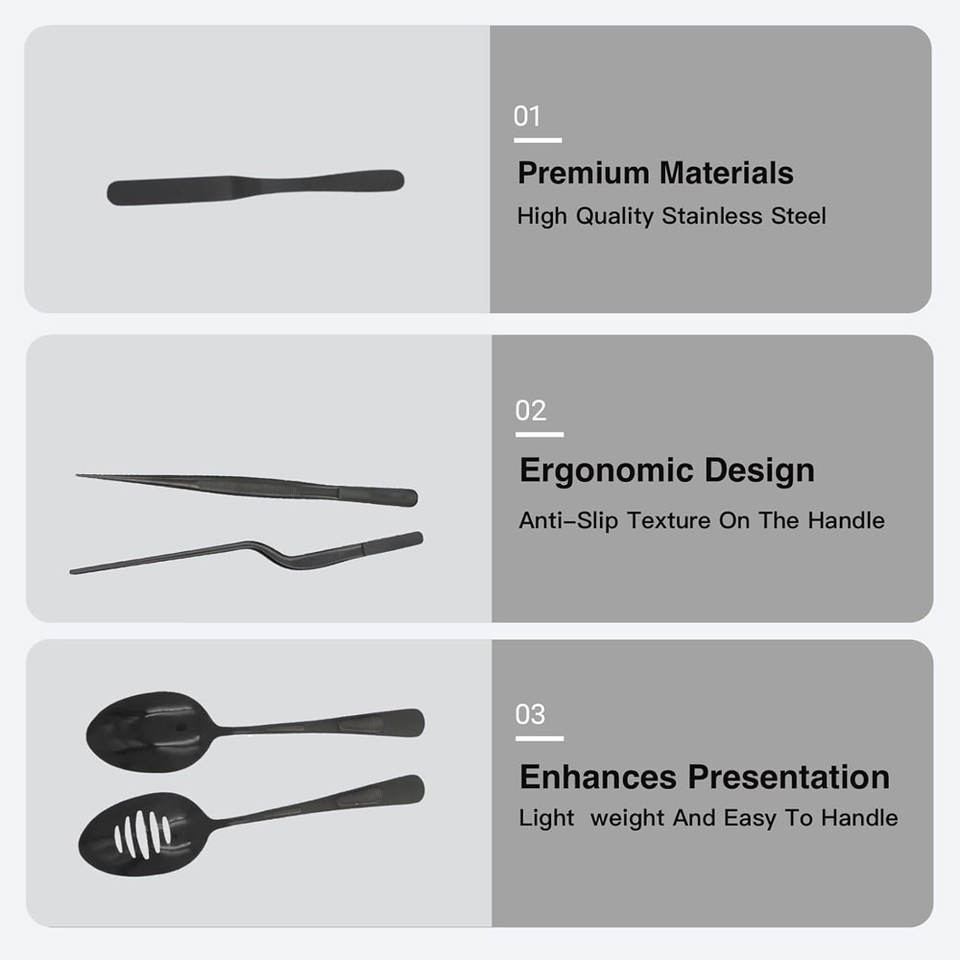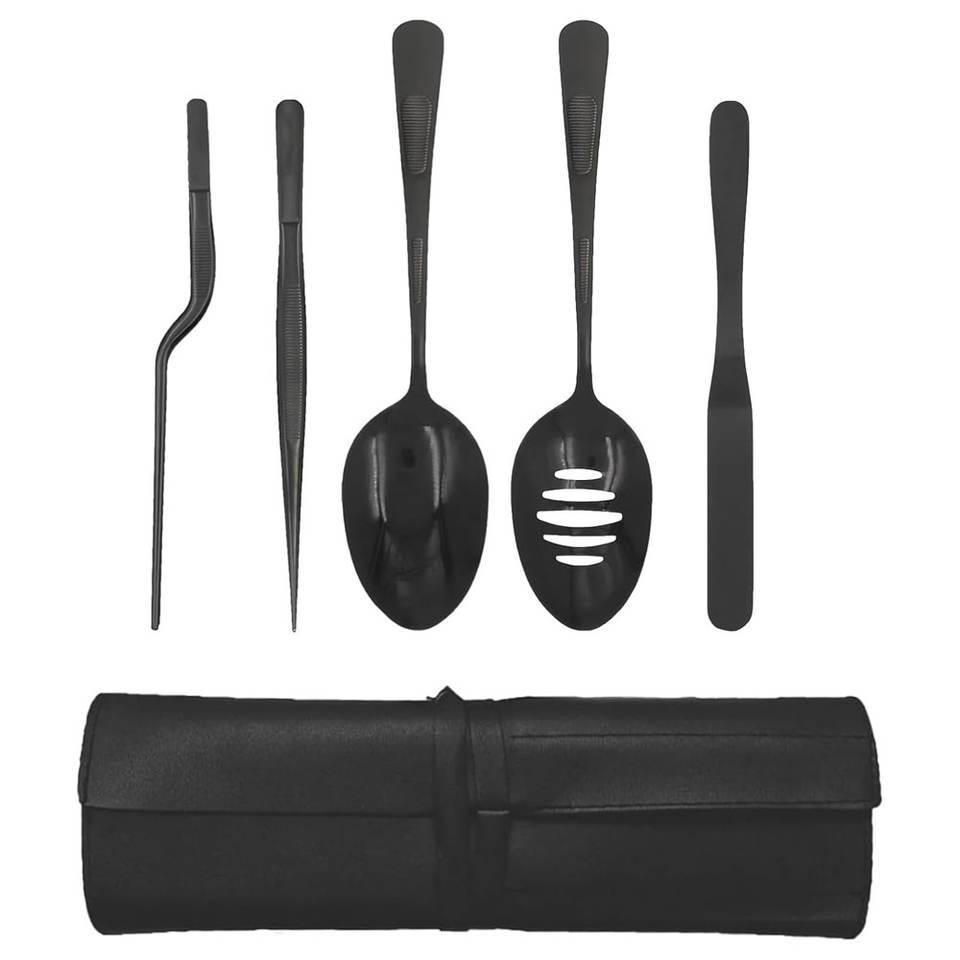 Kit de cuisine professionnel 5 pièces en acier inoxydable noir pour chef, outils de platsage, fournisseur au Pakistan, meilleure qualité, prix abordable