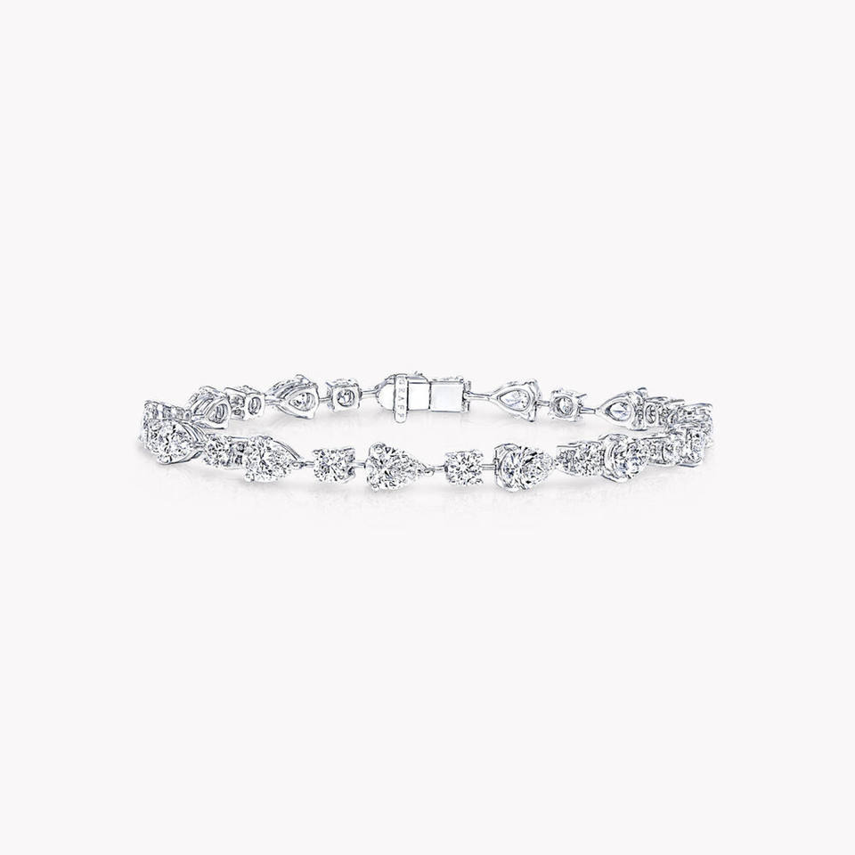 Bracelet en platine avec diamants de laboratoire de forme poire et ronde