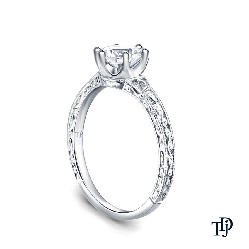 Bague de fiançailles semi-montée en platine, style vintage, gravée à la main, avec milgrain, unique en son genre